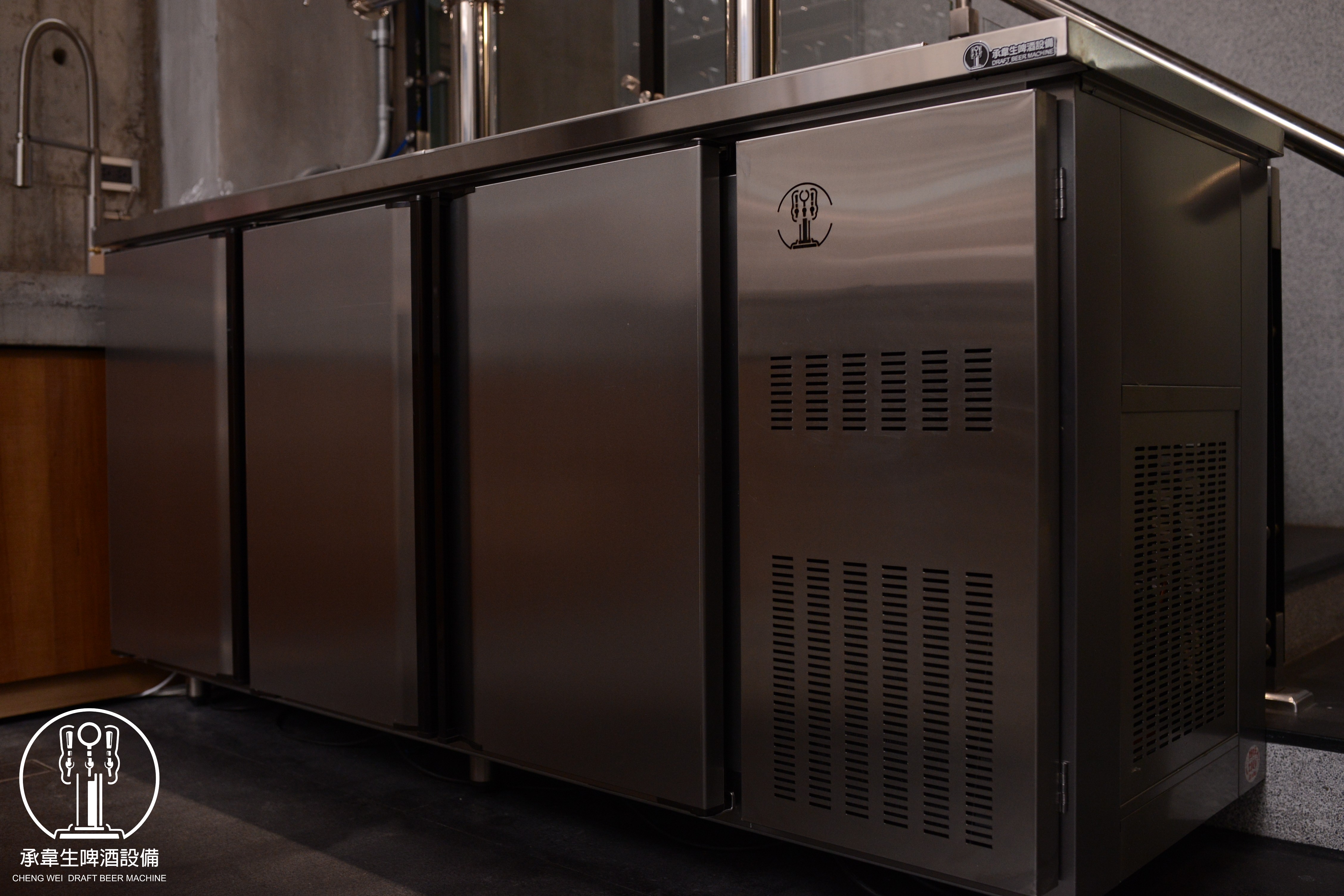 生啤酒設備專用的工作台冰箱結合了生啤酒供應系統與冷藏功能,特別適合酒吧、餐廳或啤酒廠使用。它的主要特點包括: