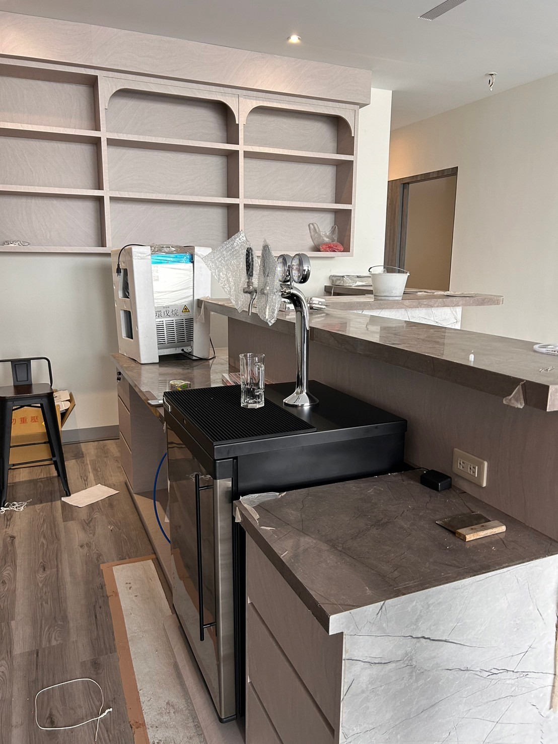 施工地點: 嘉義民雄禾楓覓月館施工內容: 小冰箱式生啤酒設備搭配單柱雙管酒柱