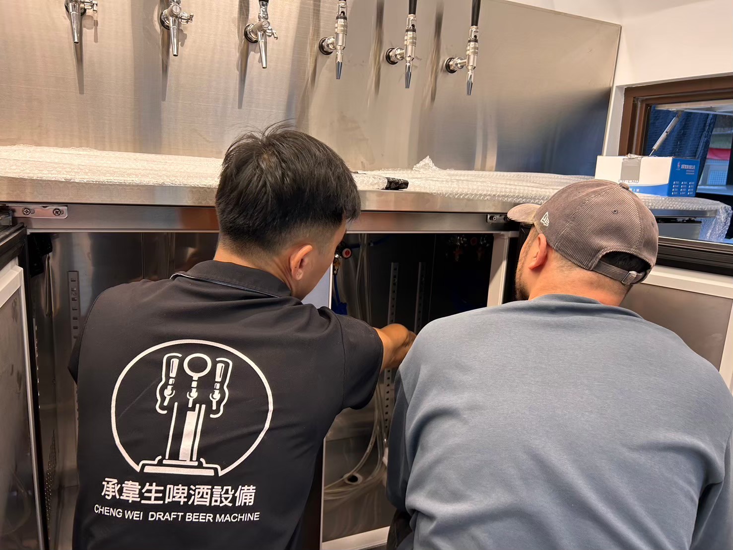 壁面式生啤酒柱搭配七尺低溫冷藏冰箱