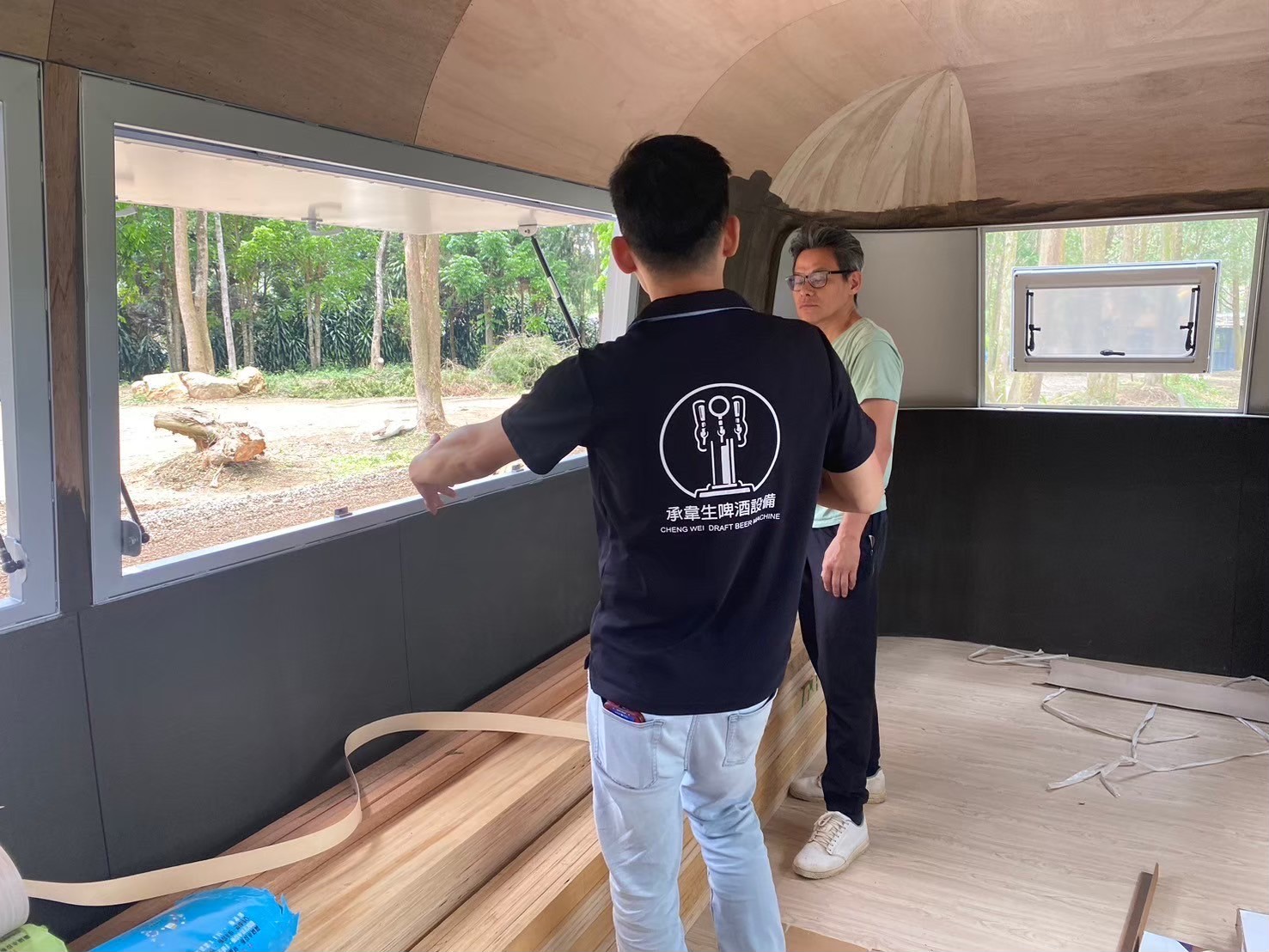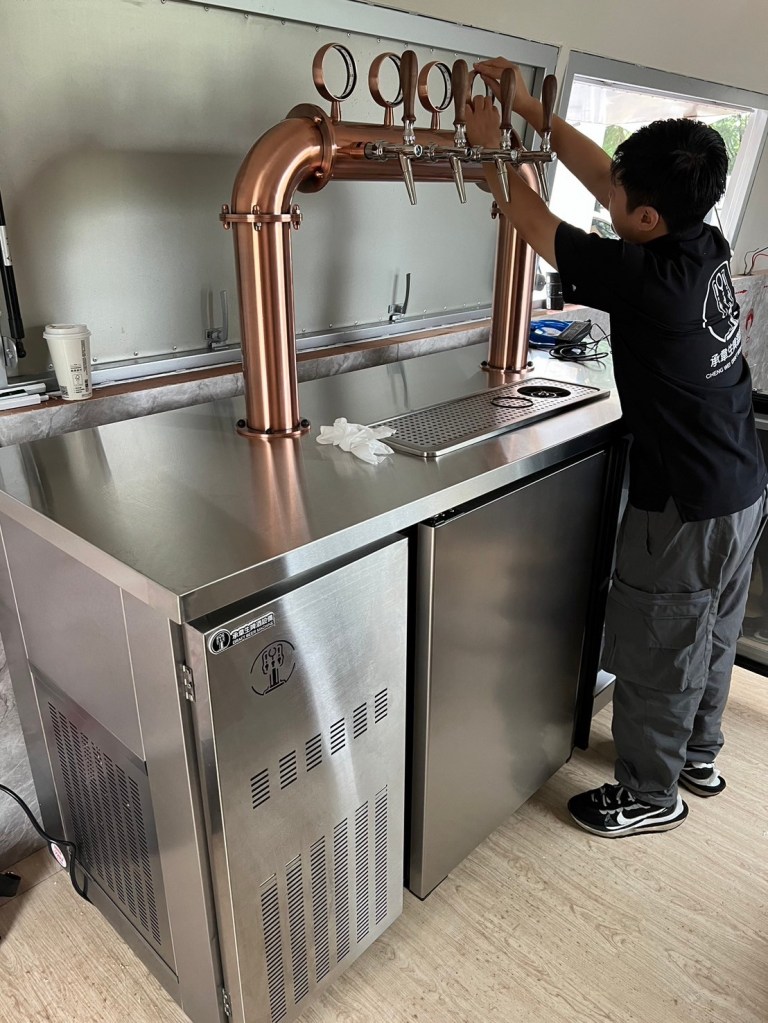 我們在南投魚池的 3JD HOME二館這漂亮的露營區成功完成了生啤酒設備的安裝。這套設備包括拱門型四管生啤酒酒柱,搭配六尺低溫冷藏冰箱,經典的古銅色外觀搭配胡桃木質把手,確保啤酒在最佳狀態下儲存並提供給顧客。