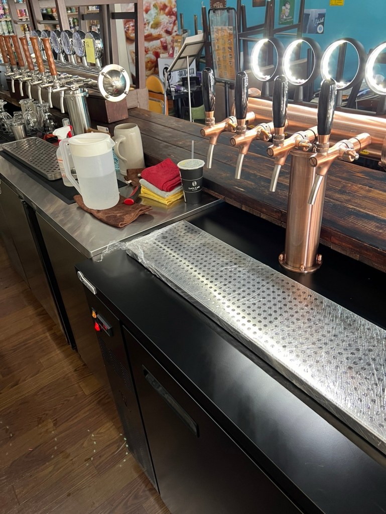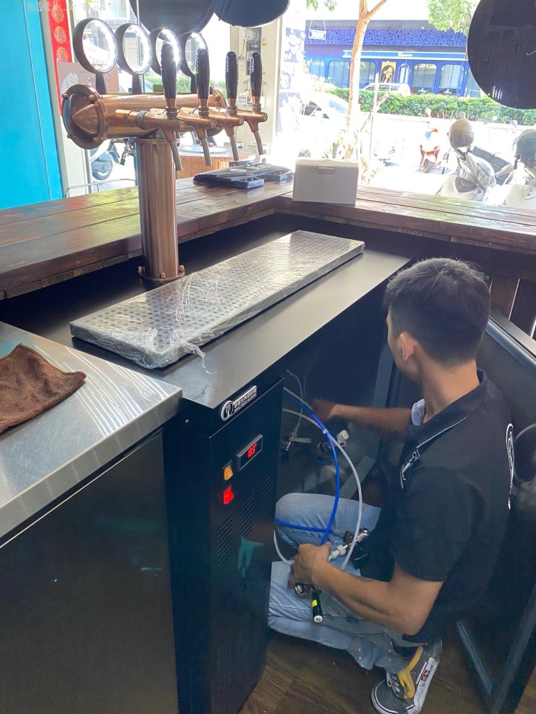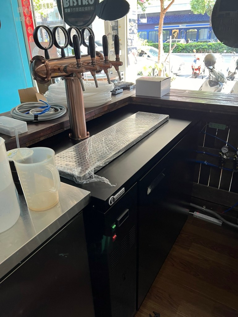 施工內容: T型四管(古銅色)酒柱搭配六桶生啤酒冰箱