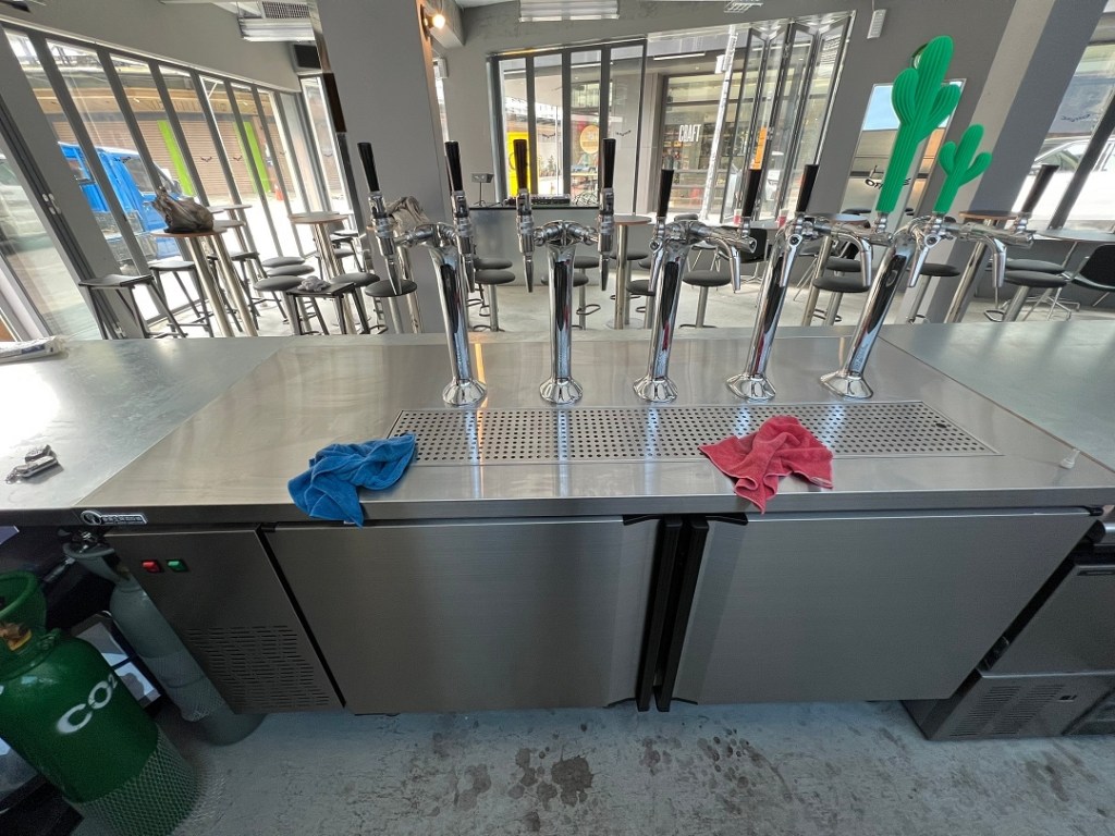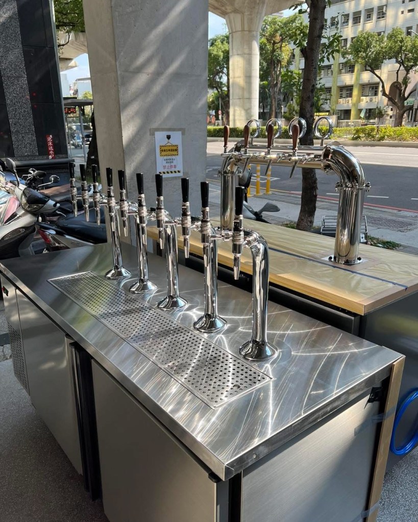 這次為高雄新興區夜店打造專業生啤酒供應系統!此次安裝包括一台六尺生啤酒冷藏冰箱,搭配五支單柱雙管啤酒柱,結合簡約不鏽鋼設計,完美融入店內高質感的工業風裝潢。設備不僅確保每一杯啤酒的最佳新鮮度,更以穩定流量與細膩泡沫提供頂級飲酒享受。全新啤酒吧台即將啟用,敬請期待!