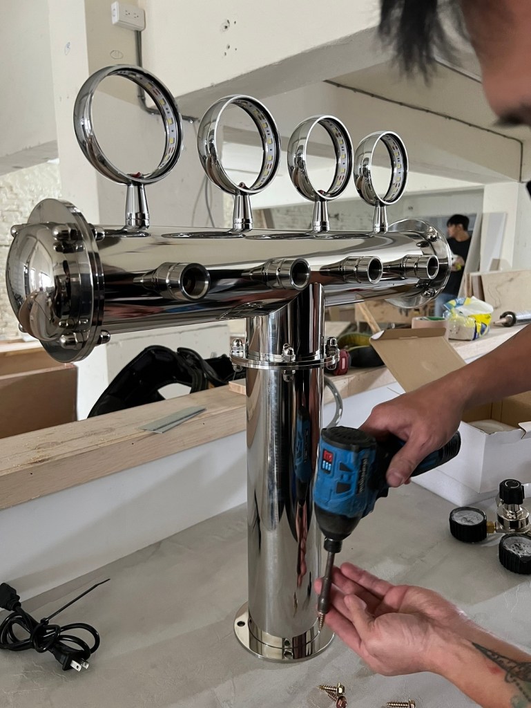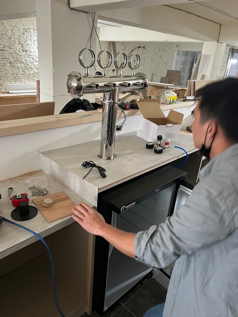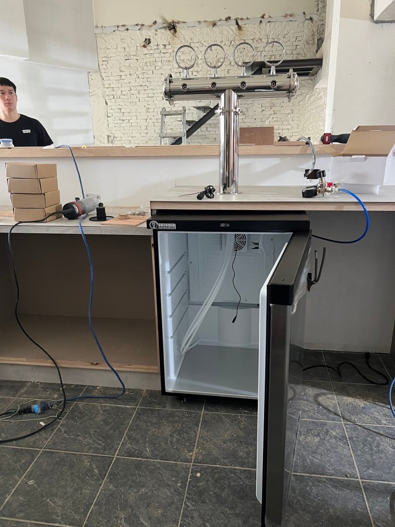 我們這次攜手打造全新式傳燒店專業生啤酒供應系統!此次配置四桶式小型冷藏冰箱,搭配經典T型四管酒柱,並特別進行原有檯面開孔施工,讓酒柱穿過台面直接呈現在客人面前,增添互動性與視覺效果。精巧的設備設計,帶來極致的用餐與飲酒體驗。歡迎來感受這獨特的氛圍與美味!