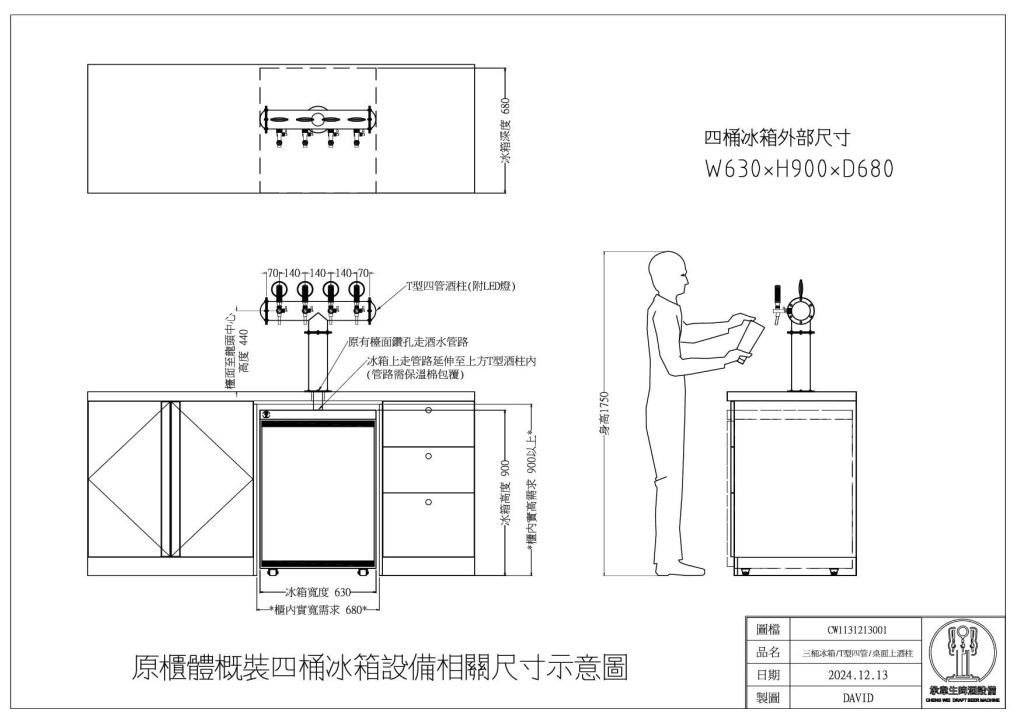 施工內容: 四桶式小冰箱搭配T型四管酒柱