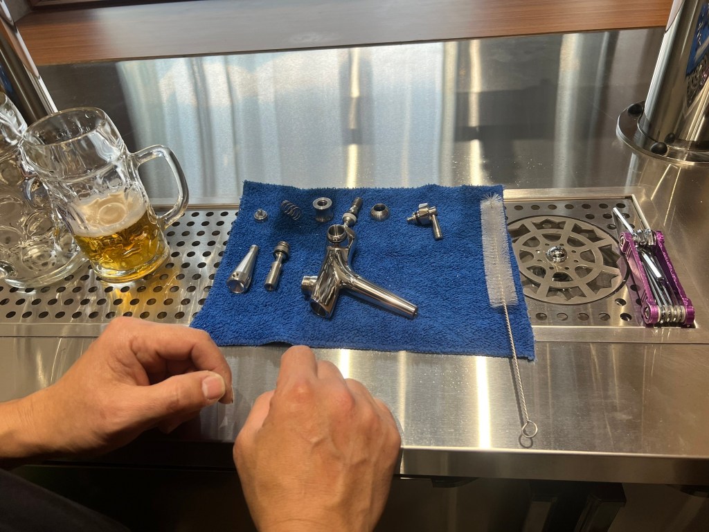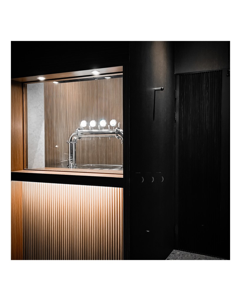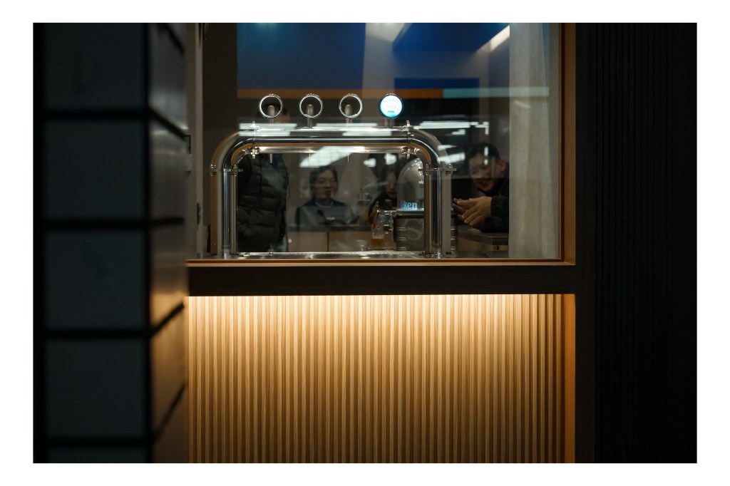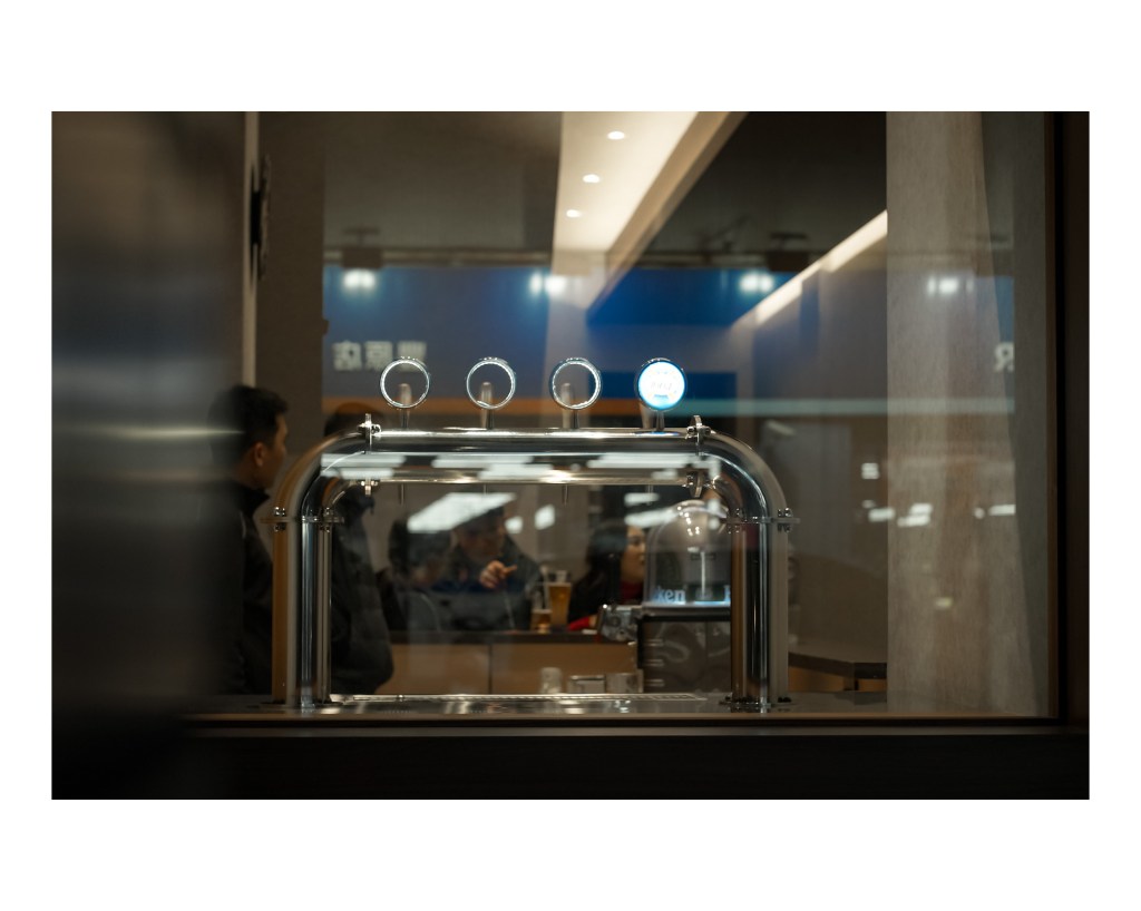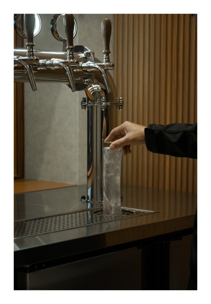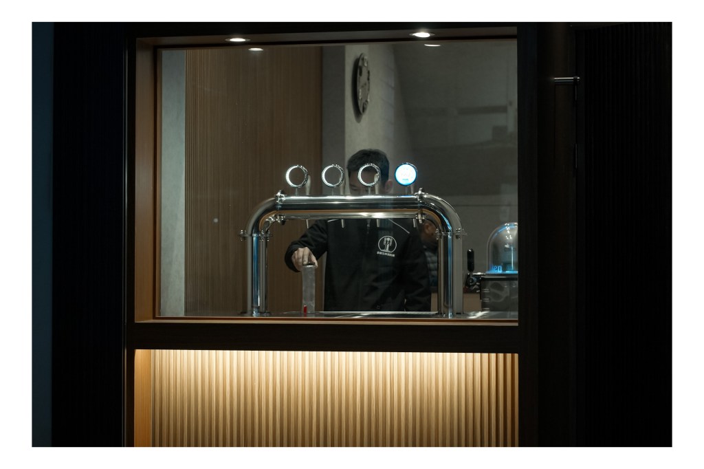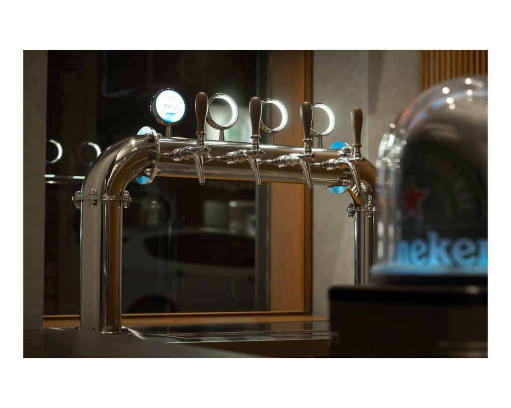 店內外的整體設計融合木質與不鏽鋼元素,溫暖燈光增添高級感。我們現場安裝調校完成後,進行操作及保養教學並確認設備運行順暢,為店家提供穩定的生啤供應。