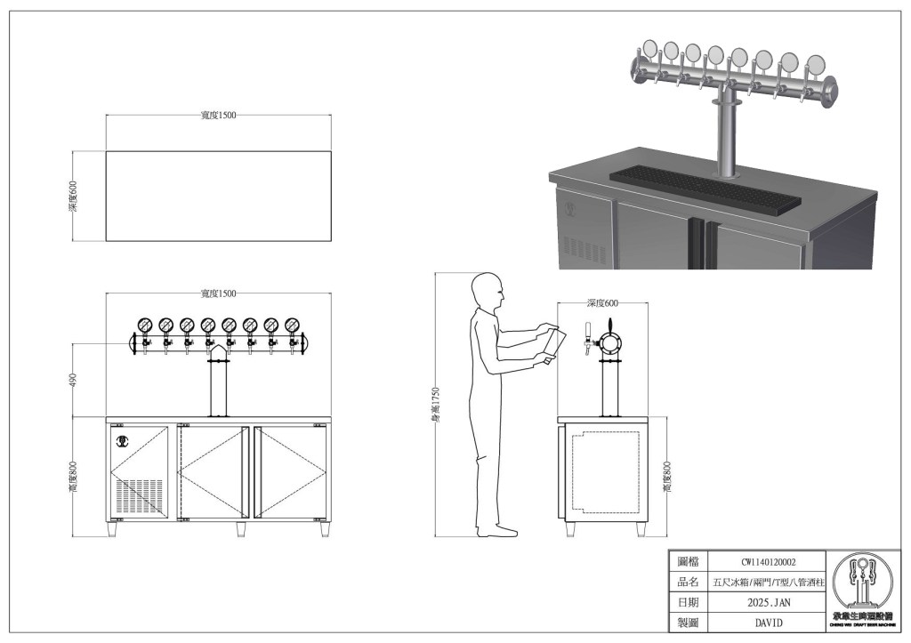 施工內容:五尺低溫冷藏冰箱搭配T型八管生啤酒系統