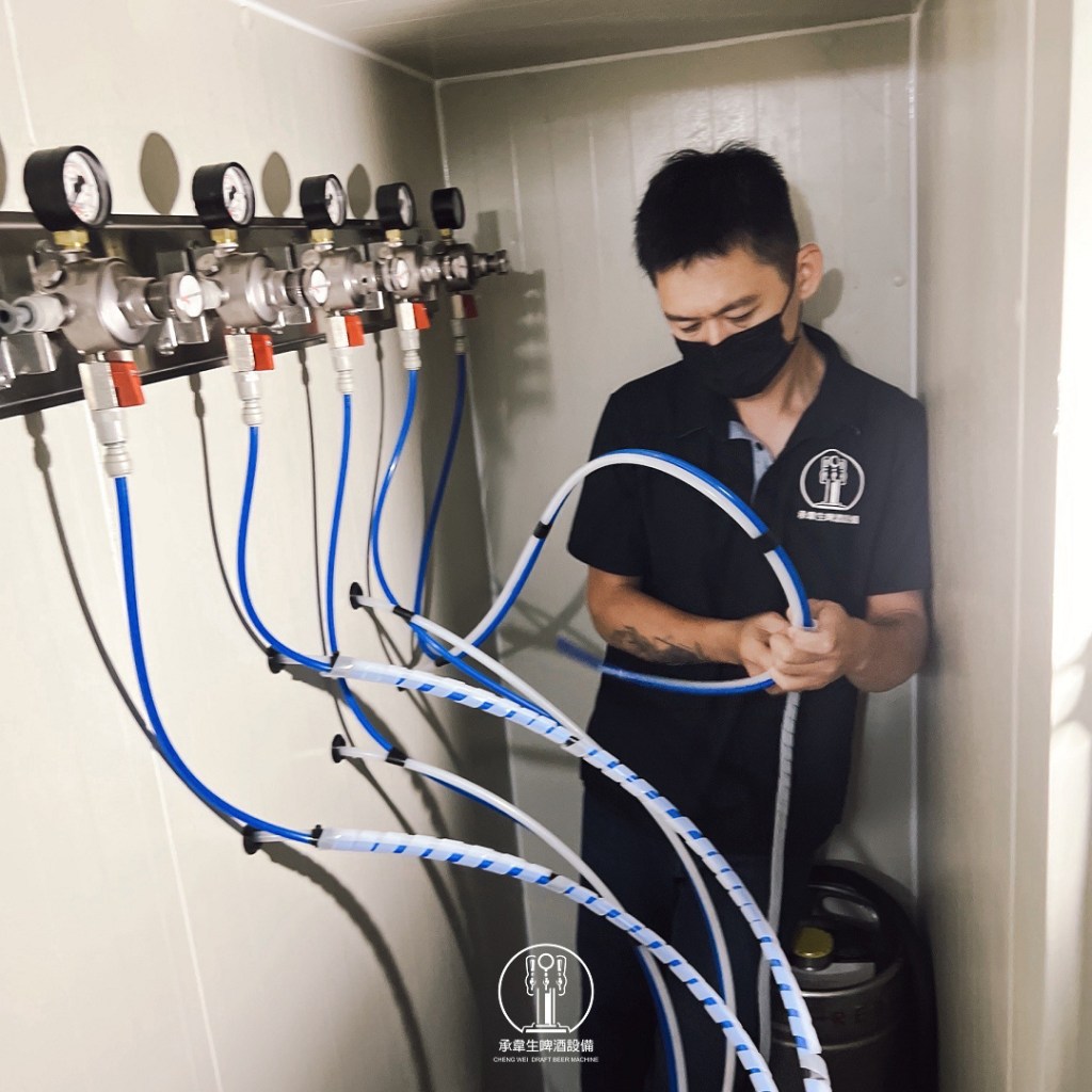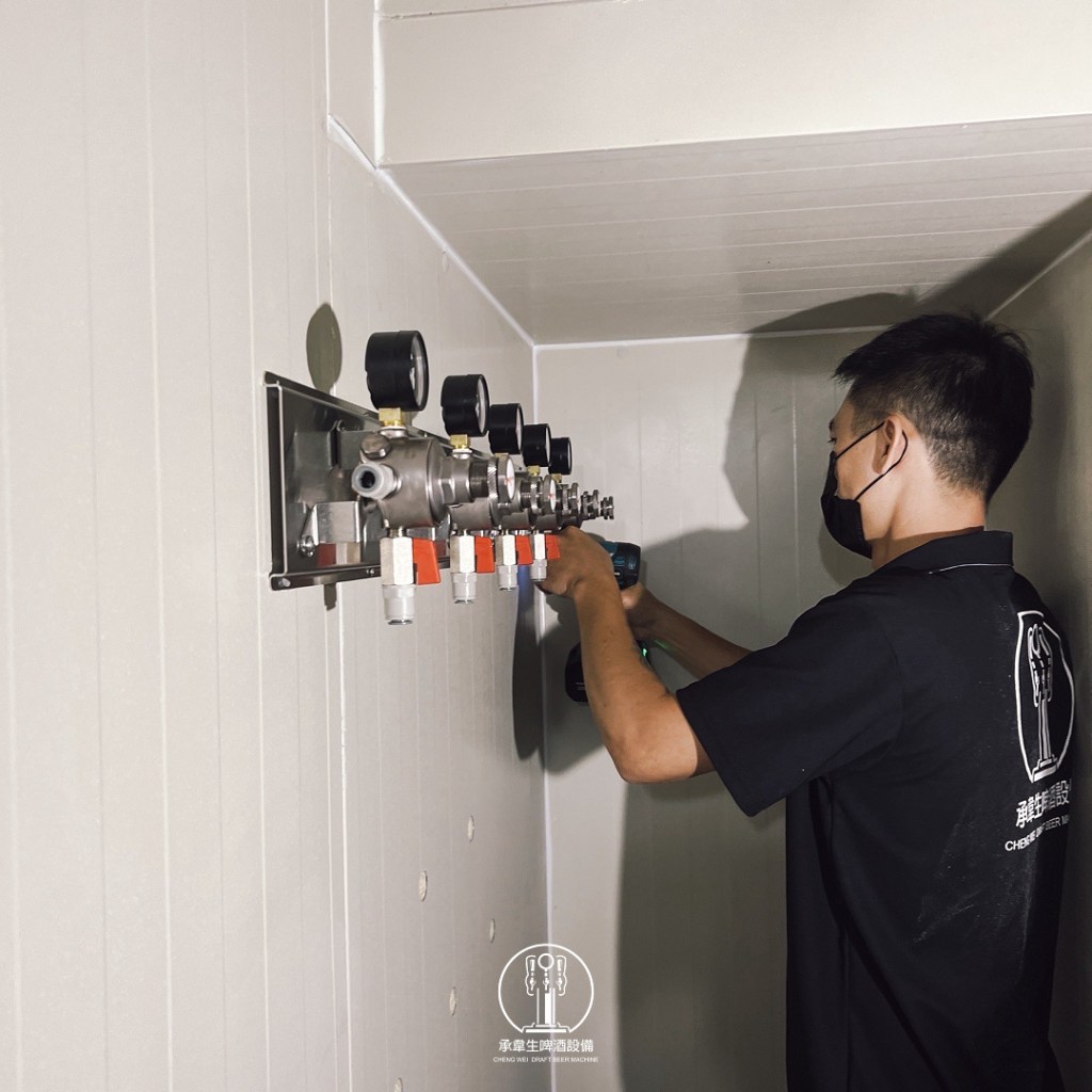 這次我們在客戶指定的凍庫空間內,完成了一套高效率的 牆面式生啤酒供應系統,全程依照專業流程精準施作,確保每一道管路與接頭都達到最穩定與安全的狀態。